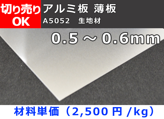 TOP > アルミ製品一覧 > アルミ板 切り売り > A5052板 0.5~0.6mm