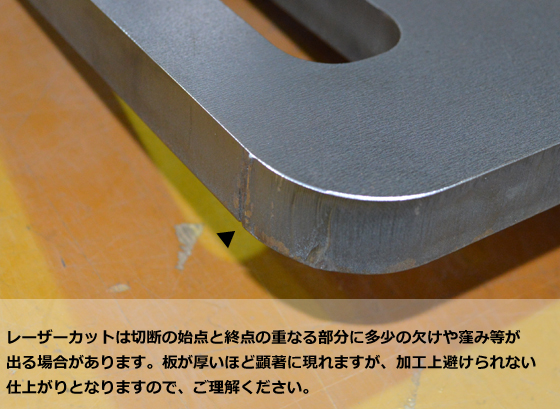 レーザー・ガス切断費(周囲カット費):1,200円/m~ 切断公差:±1.0mm ~ 3.0mm(板厚・切断サイズによる) ※レーザーカット・ガス切断品は取り寄せとなりますので、納期はご注文確定から4~7日(土日祝除く)を要します。 |