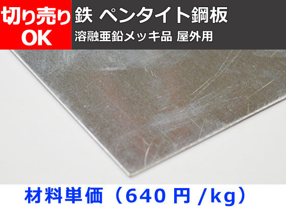 鉄 ペンタイト鋼板(表面メッキ品屋外用)各板厚 切り売り 小口販売加工