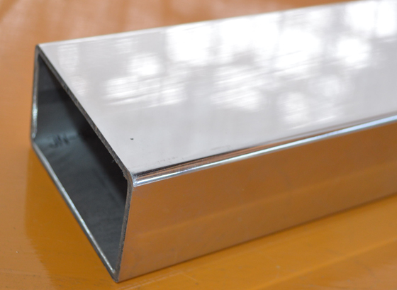 ステンレス製長四角パイプ(SUS304)の鏡面研磨品(#400)