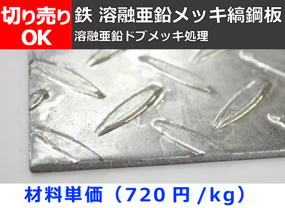 TOP > 鉄製品一覧 > 鉄板 切り売り > 溶融亜鉛メッキ 縞鋼板