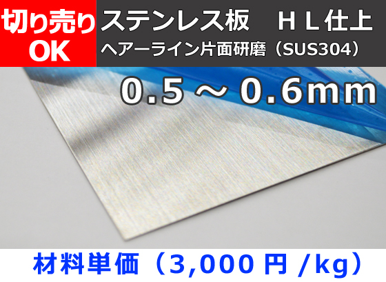 TOP > ステンレス製品一覧 > ステンレス板 切り売り > ステンレス板HL研磨 0.5~0.6mm