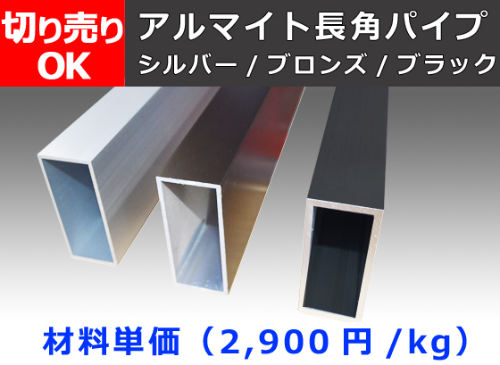 アルミ 平角パイプ(長方形) アルマイト処理品各種 切り売り 通販 (A6063)