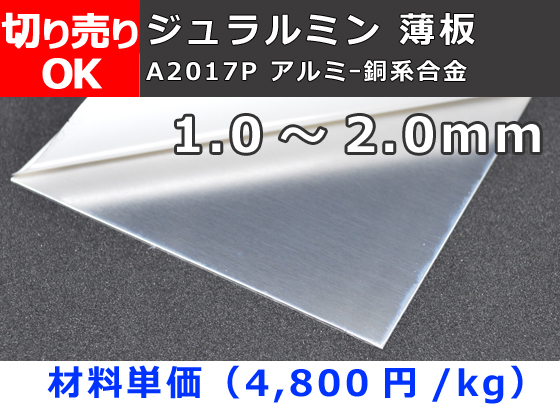 TOP > アルミ製品一覧 > アルミ板 切り売り > A2017板 1.0mm~2.0mm