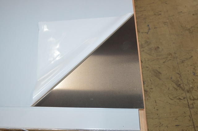 アルミー銅系合金板(A2017P) 片面保護シート付き 表面の保護シート(白色)をはがした際、保護シートの粘着ノリが付着している場合があります。その際にはお手数ですが、シンナーやアルコール等で除去してください。 |