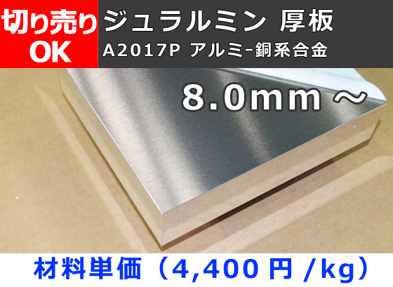 TOP > アルミ製品一覧 > アルミ板 切り売り > A2017板 8.0mm~