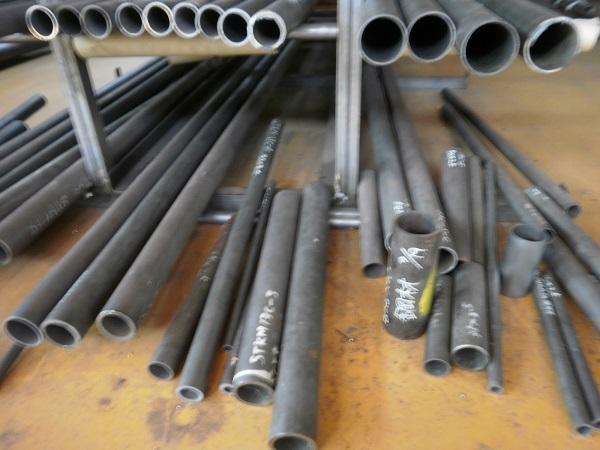 鉄丸パイプ STKM13A-SH 熱間仕上シームレス(継目無し)鋼菅の各品形状を(1000~100mm)定寸長さでの希望(品形状・定寸法・本数)の販売です。 STKM13C-SC 冷間引抜鋼菅シームレス(継ぎ目無し)材に比して強度は(370N/mm2以上)と低いですが極めて低価格です。また冷間引抜管と比べて、精度は粗めです。 気になる内面の溶接バリは有りません。熱間圧延仕上げで生産される黒パイプで、肌は濃い茶のさび止めが施されています。 |