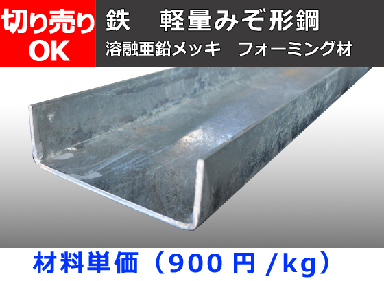TOP > 鉄製品一覧 > L ・コ型材 切り売り > 軽量みぞ形鋼 溶融亜鉛メッキ