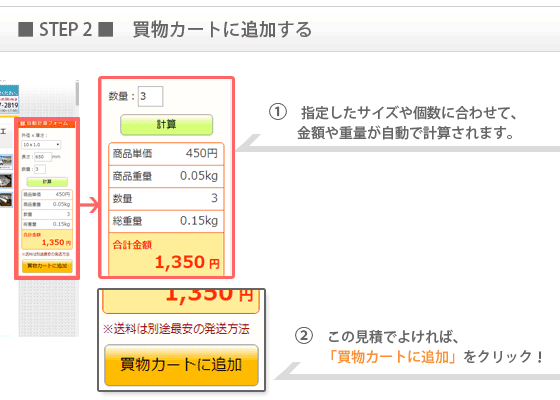 ※買い物カートに複数の商品を入れる場合、一つ目をカートに入れた後に