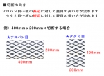 丸のこ切断:800円/枚~ 切断公差:±1~5mm ※メッシュ配列の向きは「タタミ目」「ソロバン目(横幅最大1000mm)」より選択ください。 ※端は切りっぱなしとなります。素手で扱うのは危険ですので取り扱いにご注意ください。 |