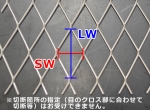 丸のこ切断:(切断費は単価に込) 切断公差:±1.0mm ~ 5.0mm ※メッシュ配列の向きは「タタミ目」「ソロバン目」からお選びください。 ※端は切りっぱなしとなります。素手で扱うのは危険ですので取り扱いにご注意ください。 |