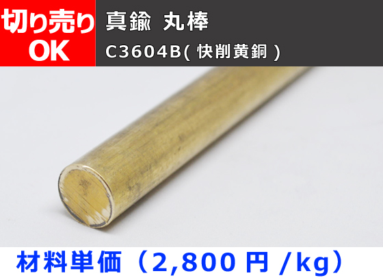 真鍮丸棒 C3604B(快削黄銅) の各サイズの希望寸法での切り売りになります。 標準的な真ちゅう棒で、板より切削性が優れています。特に被削性に優れ、ボルト・ナット・小ねじ・歯車の機械部分や水栓ガス器具部品などに用いられることが多いです。 |