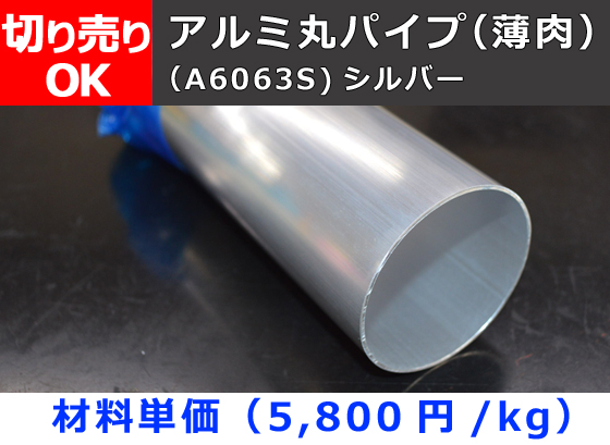 TOP > アルミ製品一覧 > アルミパイプ 切り売り > 薄肉パイプA6063S