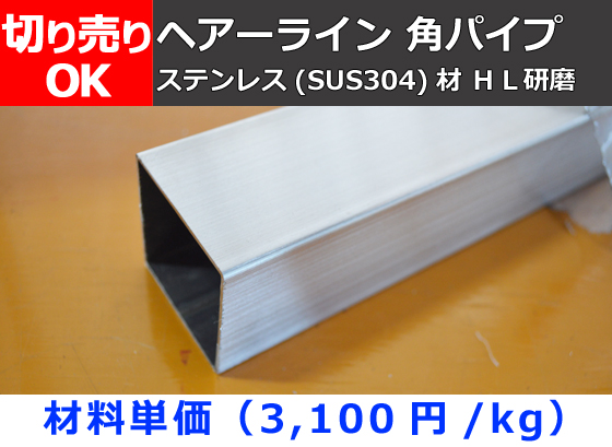 TOP > ステンレス製品一覧 > ステンレスパイプ 切り売り > ヘアーライン 角パイプ