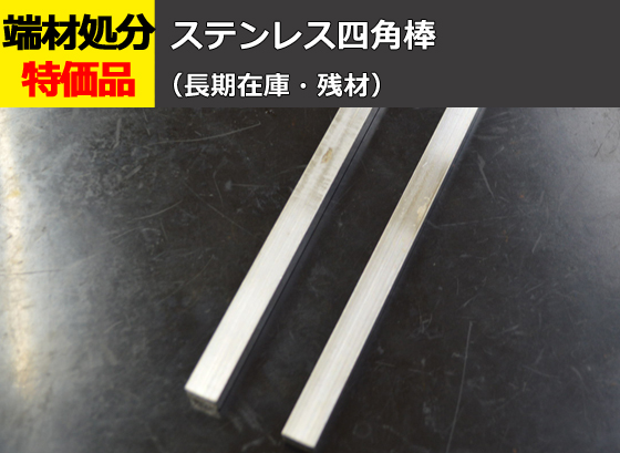 ステンレス四角棒(SUS304)の長期在庫品・残材を特価にてご案内!