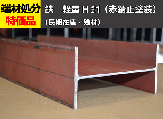 鉄 軽量H鋼(赤錆止め塗装品)の長期在庫品・残材を特価にてご案内!