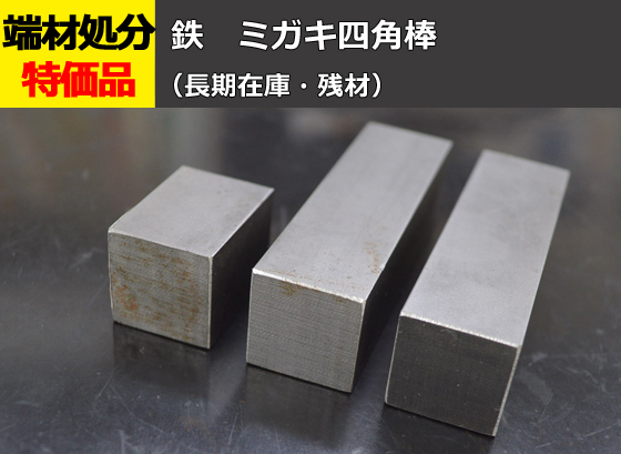 鉄 ミガキ四角棒(SS400/S45C)の長期在庫品・残材を特価にてご案内!