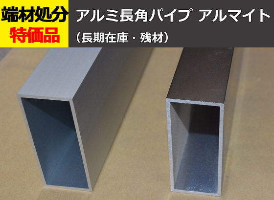 アルミ 平角パイプ(材質6063アルマイト処理品)の長期在庫品・残材を特価にてご案内!