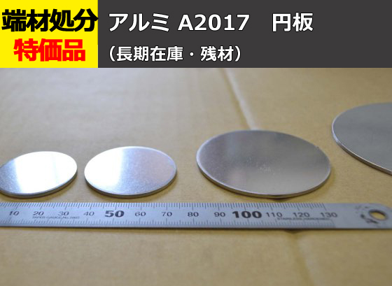 端材【端材処分】アルミ合金板 ジュラルミン(A2017) 円板 (再切断・返品交換不可)