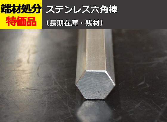 ステンレス六角棒(SUS304)の長期在庫品・残材を特価にてご案内!