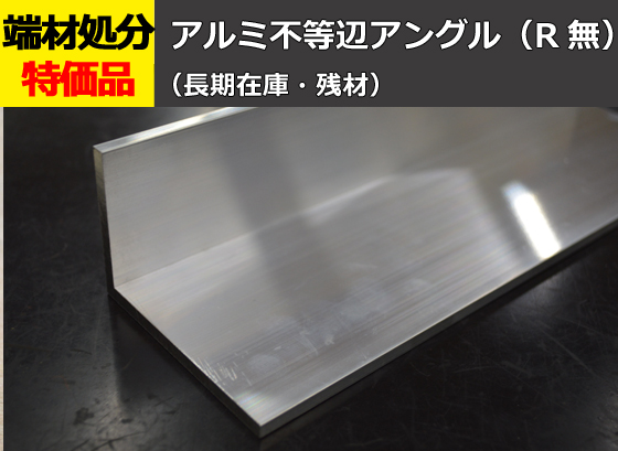 アルミ 不等辺アングル R無(材質6063生地材)の長期在庫品・残材を特価にてご案内!