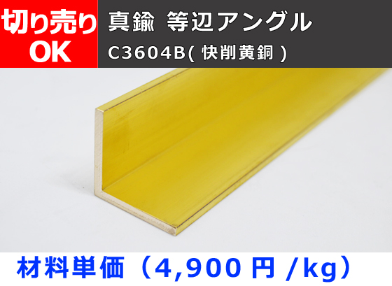 真鍮 等辺アングル C3604B(快削黄銅) L型鋼 切り売り 小口販売加工